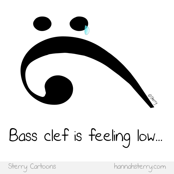Bass Clef is Feeling Low – Vector – Music Cartoon By Hannah Sterry